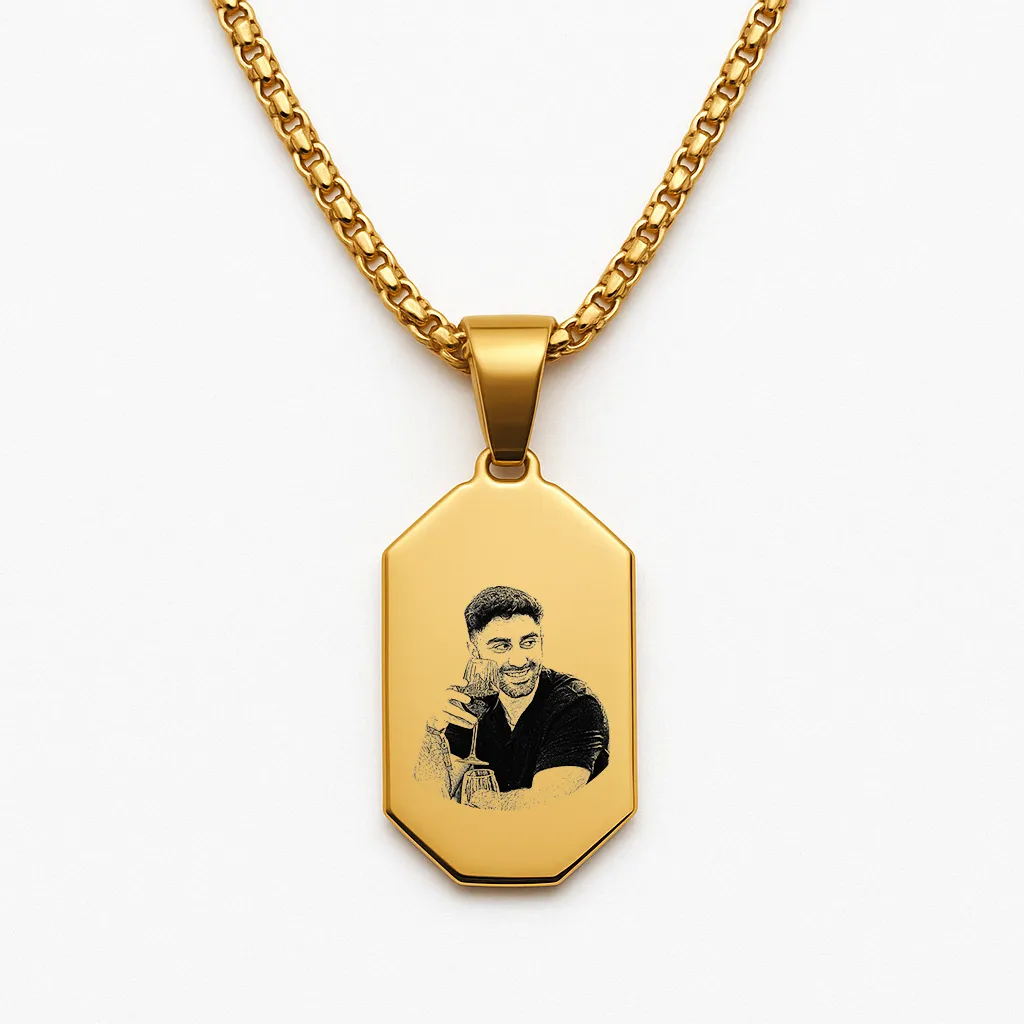 שרשרת מלבנית פלדת אל חלד יוקרתית עם חריטה ייחודית של איור שלכם